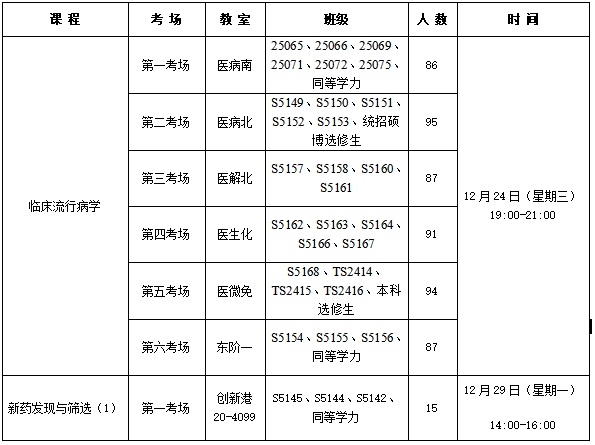 现将医学部研究生第一学期考试安排公布如下(统招学生携带学生证或一卡通,同等学力学生持一卡通参加考试):